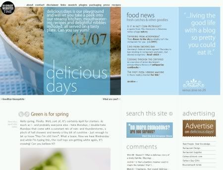 Questo è un blog ulra-famoso oltre che bellissimo. Infatti penso che molti foodbloggers abbiano preso ispirazione dall'impostazione si grafica sia testuale di Delicious Days.